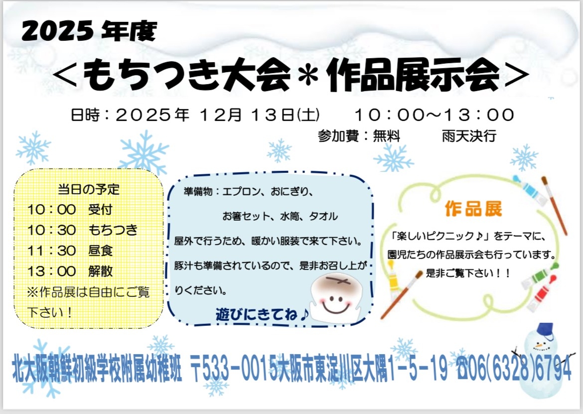 今学年度も北大阪ユチバン土曜保育を実施します!!!